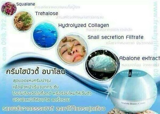 1. Snail สารสกัดจากเมือกของหอยทาก ที่ได้รับการรับรองว่าปลอดภัยจากประเทศเกาหลี ซึ่งช่วยในการ ซ่อมแซม สมานผิว และฟื้นบำรุง ได้อย่างล้ำลึก
